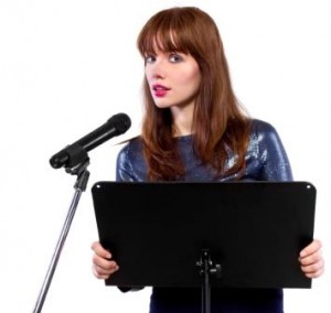 girl in shiny dress speaking on a microphone in a podium on white background 14 January 2016 By Manager