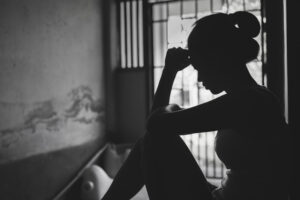 Silhouette of Depressed young woman near window at home, closeup in the dark room. domestic violence, violence against womenBlack and white photo. 6 October 2023 By Admin