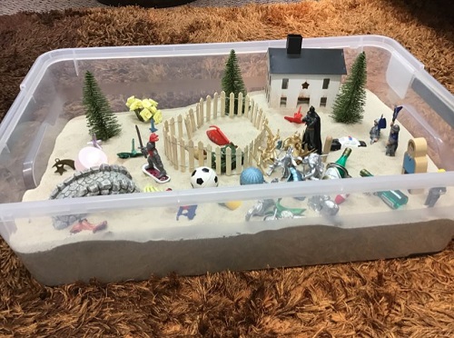 Sandplay therapy gives you the chance to express what is going on in your unconscious mind, and that you may not have the words to say.