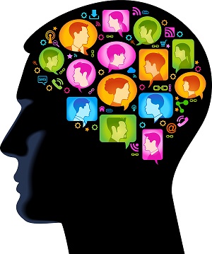 concept of human communication 8 January 2014 By Admin the head of the person with the brain in the form of bubbles speech with the faces of the people. Concept of people’s communication.