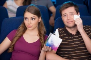 crying at the movies 18 February 2015 By Manager young man holding handkerchief and crying while watching movie with his girlfriend at the cinema